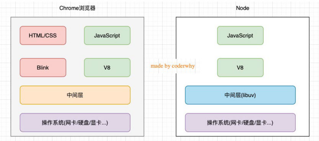 - 我们可以简单理解规划出 Node.js和浏览器的差异: