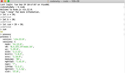 - 可以通过终端命令node js文件的方式来载入和执行对应的js文件;