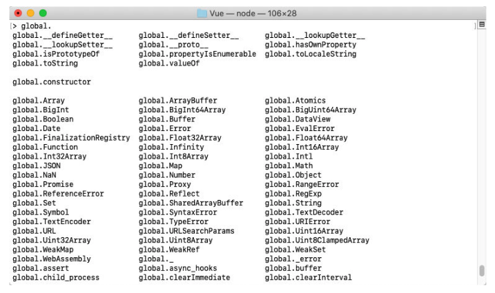 在Node中,我们也有一个global 属性,并且看起来它里面有很多其他对象。